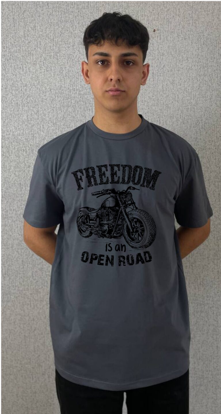 Футболка графіт пряма класичназ принтом “Байк і свобода” 190 гр/см2