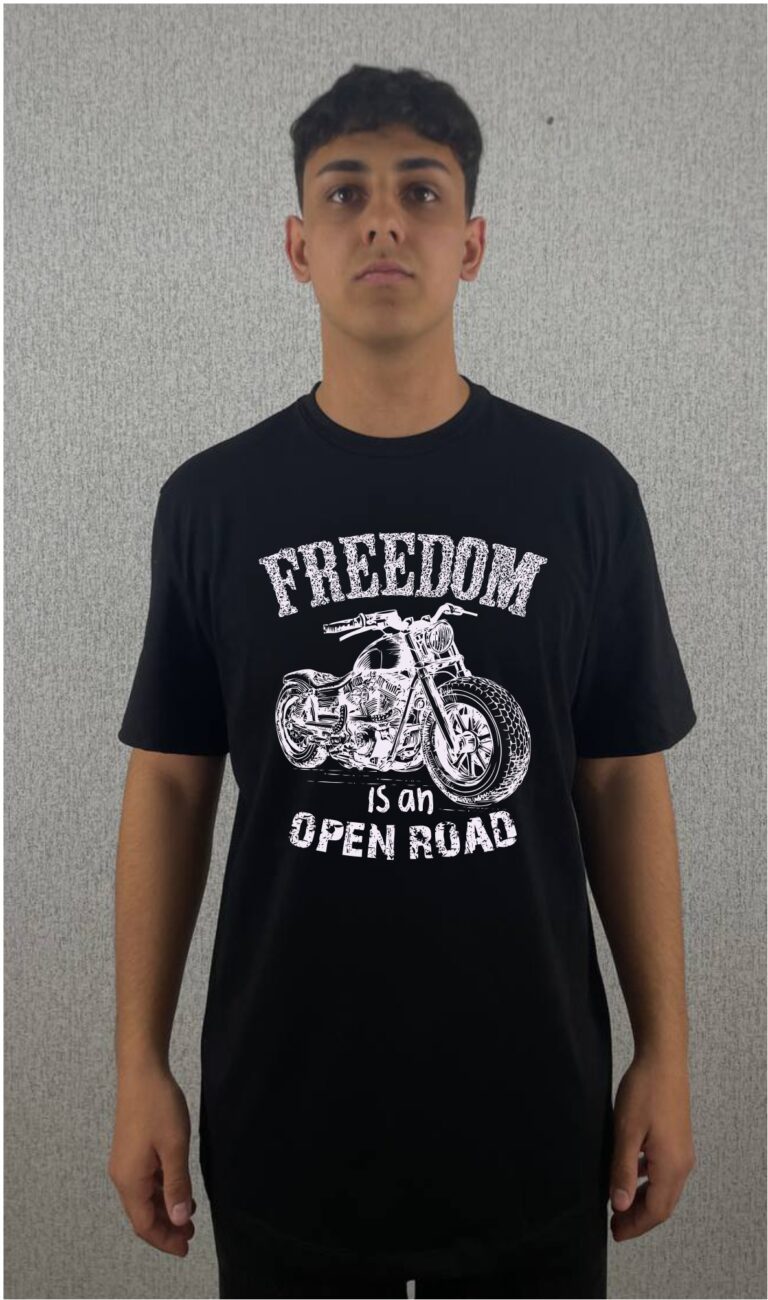 Футболка чорна класична пряма з принтом”Байк і свобода” 190 гр/см2